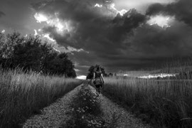 Gedanken werfen Fragen auf. Umkreisen, wie ein Mantra, manch´ irdisches Verlies. Und so eilt, im Kreislauf der Unendlichkeit, durch Raum und Zeit, durch Tag und Nacht, der Mensch, der nicht erkennt sein Paradies. (Martin Hollaus)